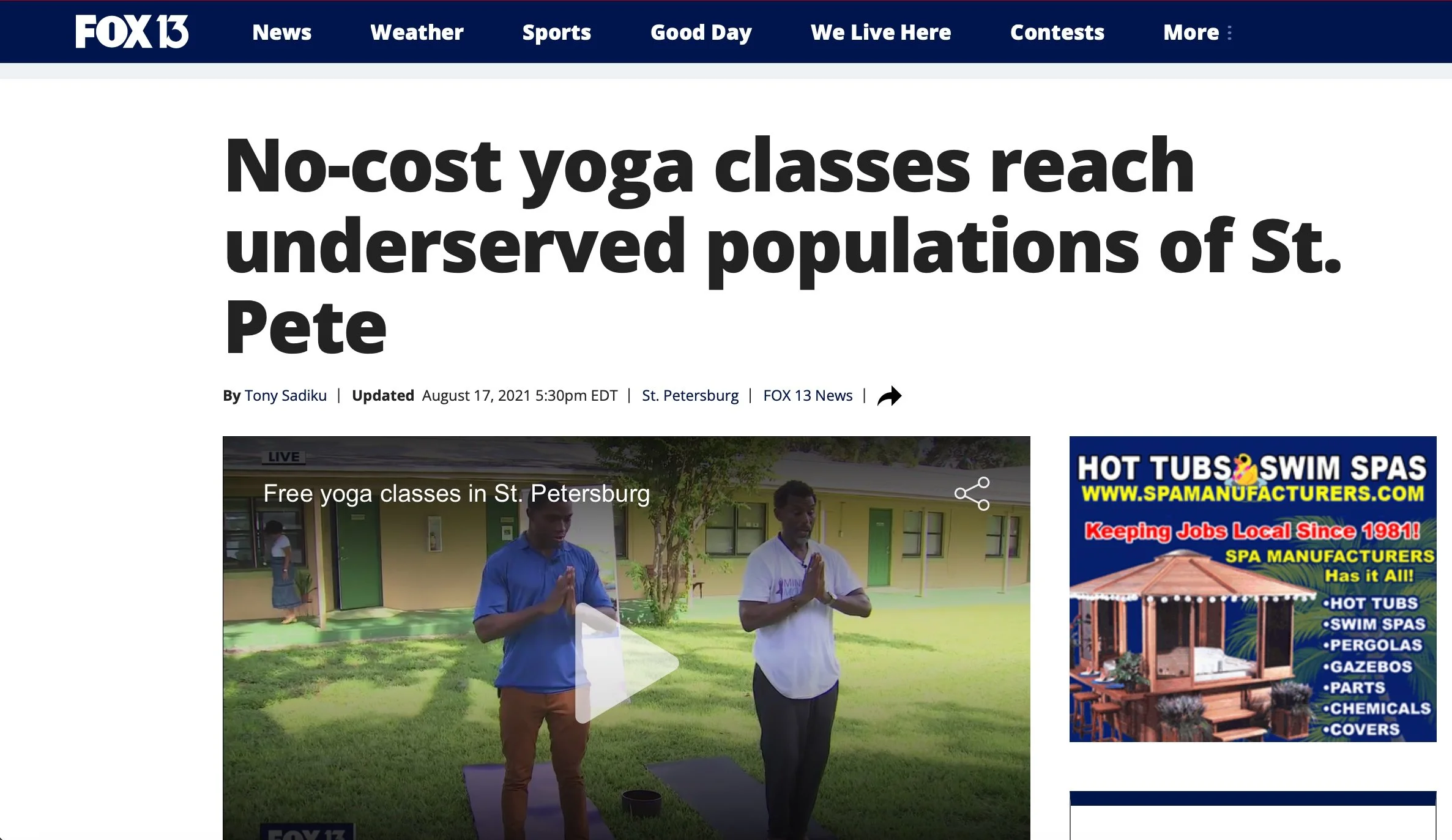 This FOX 13 News feature highlights Mindful Movement Florida's mission to bring no-cost yoga and mindfulness classes to underserved communities in St. Petersburg.
